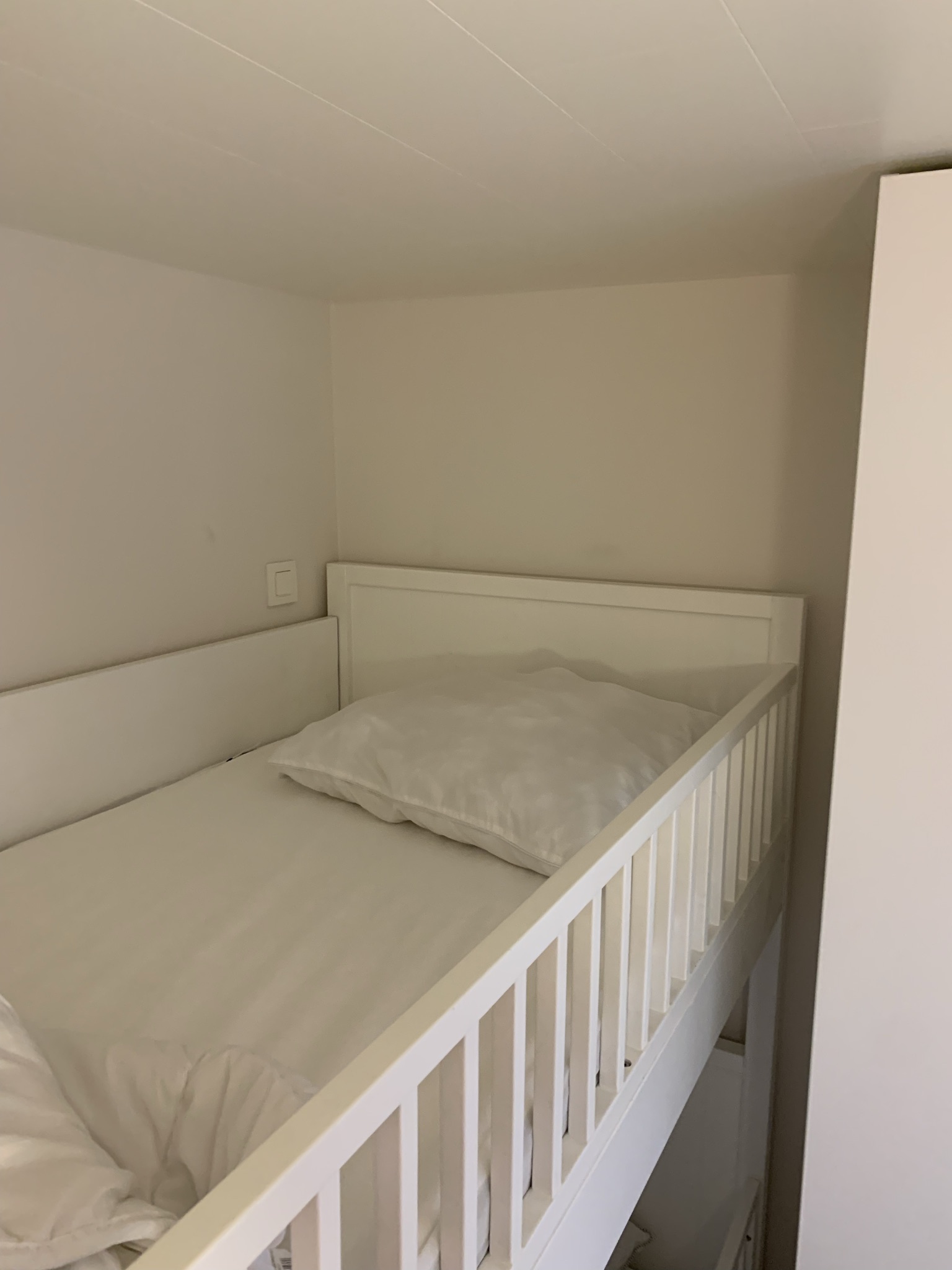 Je noemt de 2de slaapkamer al snel kinderkamer. Maar eigenlijk is het gewoon een 2de slaapkamer met 2 volwaardige 1-persoons slaapplaatsen in een stapelbed. Voorzien van 2 goede matrassen staan deze slaapplaatsen ook garant voor een zalige nachtrust.